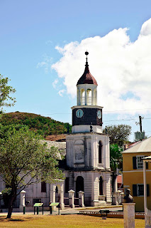 Now seasoned visitors of a whole week here in St. Croix, we decided to try the bus system. VITRAN is only $1 and takes you a long way. So off we go on one of our favorite means of transportation. Destination, Frederiksted. We had been here once before, as cruise ship passengers around 8 years ago. The place now bears no resemblance to that sleepy, broken-down village we had seen then. There is a beautiful park at the end of the cruise ship dock that extends all along the waterfront with a manicured esplanade. And of course shops, restaurants, and other services. Anchorage looks good too -- we'll need to come back here with the boat sometime. We stopped in a coffee shop, walked through the old streets, and got back on the bus to return home to the big city at the end of the day.