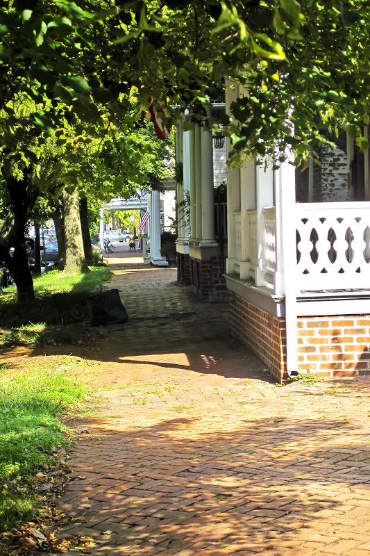 Another place we had been before, though not by water, was Urbanna, Virginia. We liked the town and thought if we ever had a chance, we would go up the Rappahannock River to visit. So, 16 miles up the river we went and anchored off the town dock. Here we were able to re-provision, do laundry, and eat out. People were very nice to us, welcoming us to town, offering us rides and even their cars to help us out while we were here. We even had a great blue heron welcome us -- sitting either on our hoisted dinghy or the solar panel, not caring if we got close. The weather was less cooperative, and we had a couple of pretty wet days, and we waited for yet another cold front to turn the wind so that we could sail down the river.