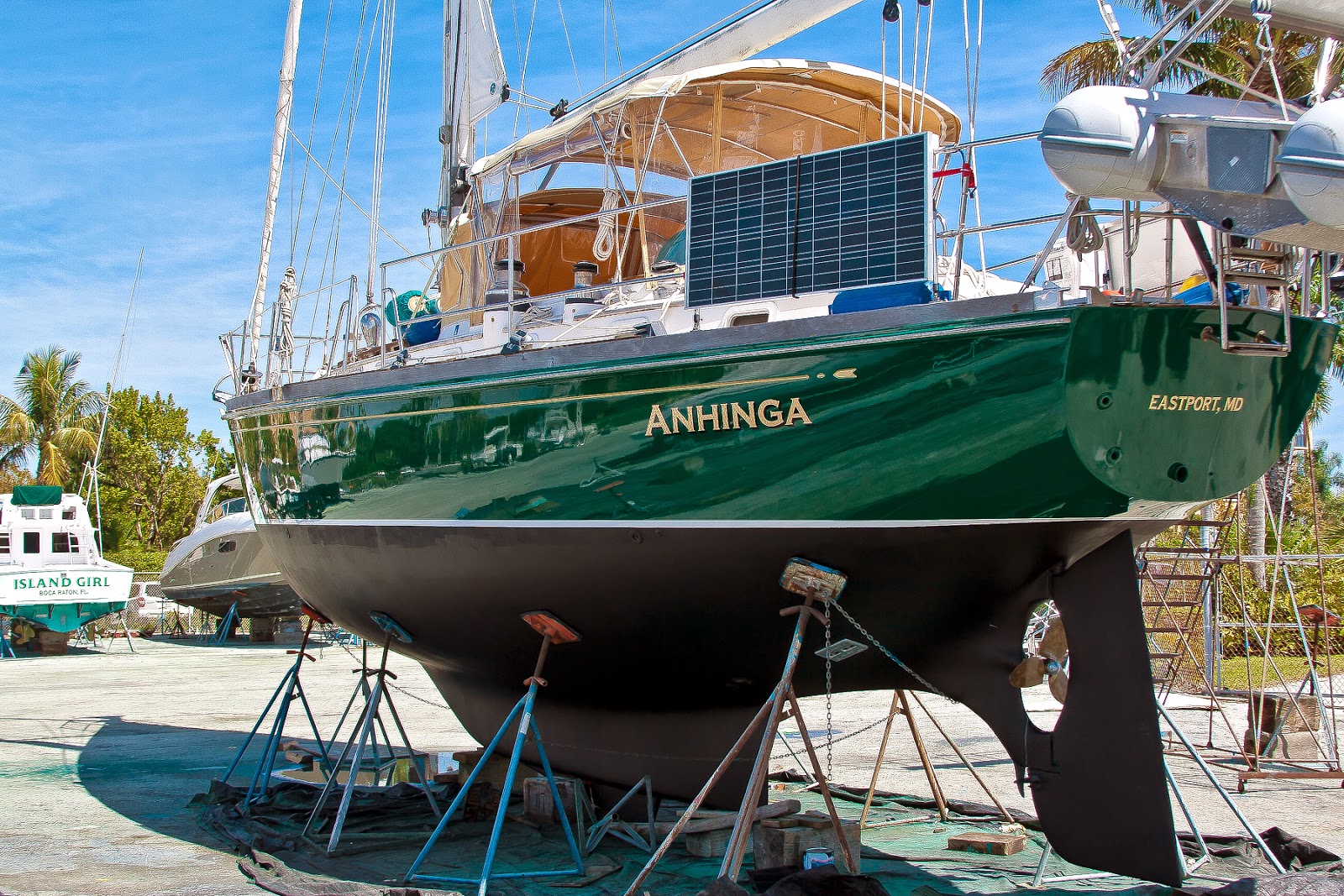 Happy with our experience, we splashed on 27 Feb and motored back up to WPB. Thanks to the team at Palm Beach Yacht Center -- Brett, Barry, Edwin and their crews for taking care of us and doing fabulous work. Thanks too to Water Works (Earl) for a beautiful topside job. And to Dick at Murray Marine for giving us back our lifeline -- a working watermaker.